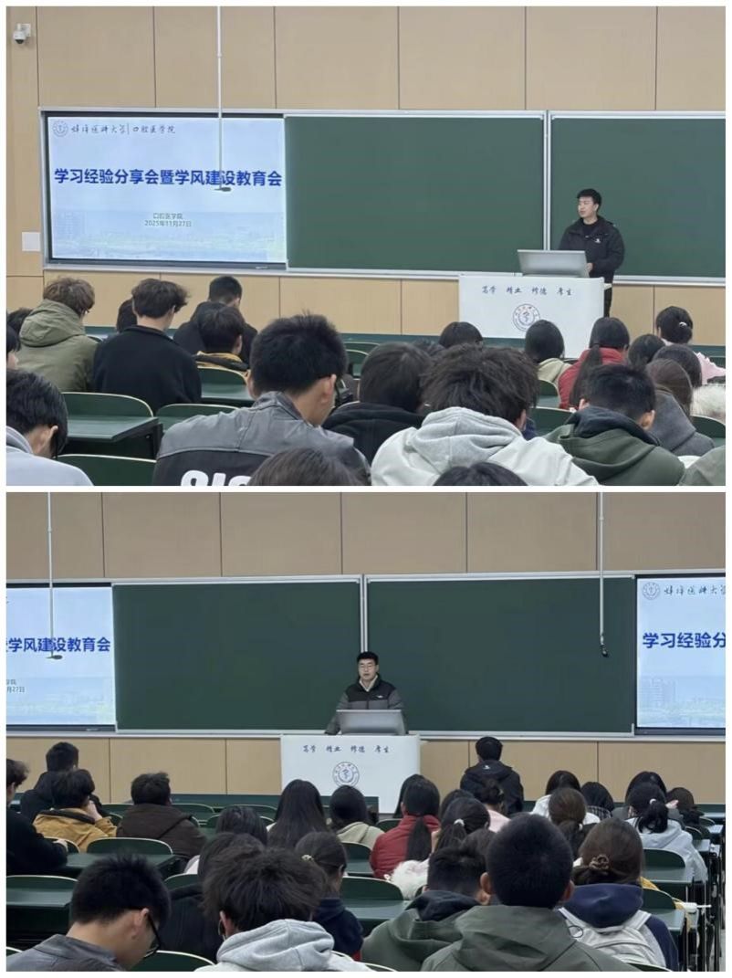11月27日晚,口腔医学院在理论楼T3教室召开学习经验分享会暨学风建设教育会,2023、2024、2025级学生和年级辅导员参会。