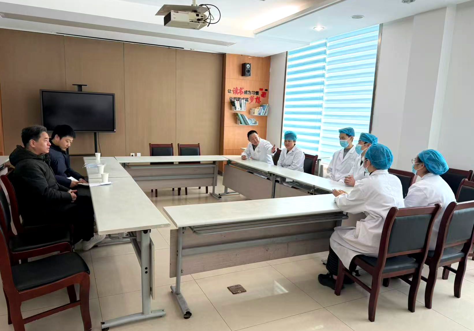在滁州市第一人民医院,孙文兵书记、姜丽娜副院长与医院副院长梁振、顾如兵等交流座谈。梁振详细介绍了医院基本情况,回顾了医院与蚌埠医科大学的深厚渊源,期望拓展合作空间。孙文兵介绍了学院在专业建设、学科发展、师资队伍、人才培养、科学研究及校企合作等方面取得的进展,推动双方合作迈向更深层次、更广领域。